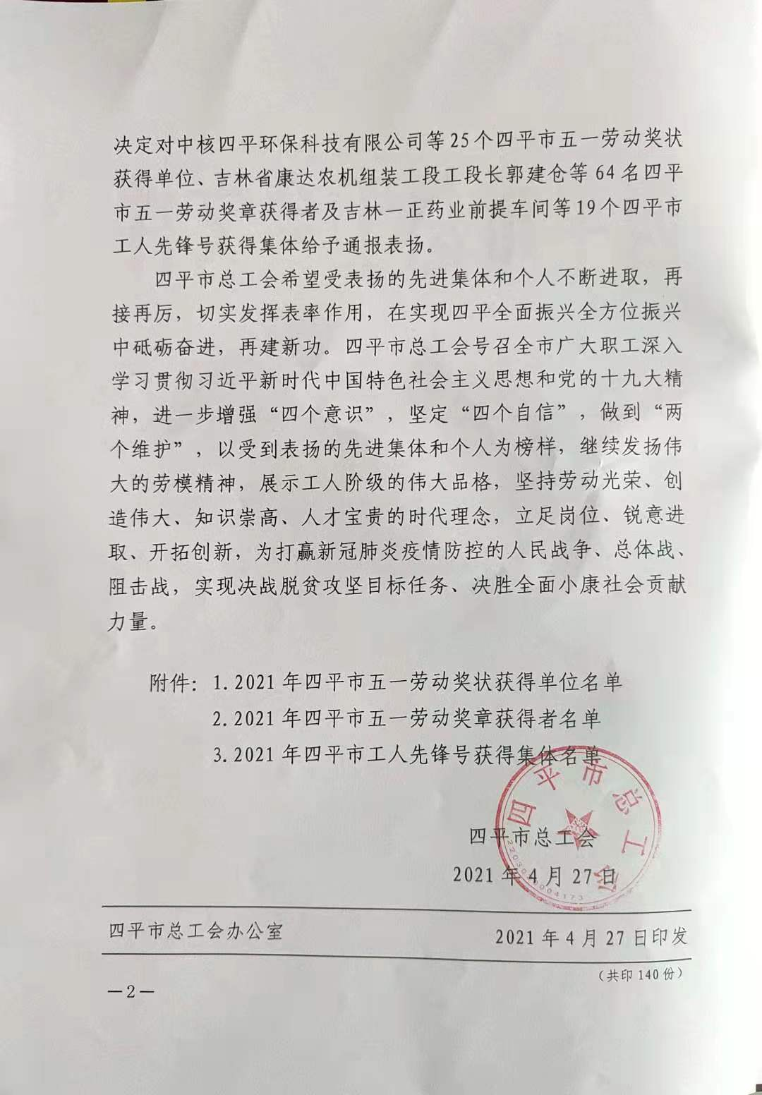 劉軍同志榮獲2021年四平市五一勞動獎?wù)?/div>